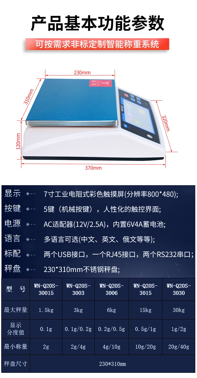 JDT-WN-Q20S 智能桌秤 詳細參數表