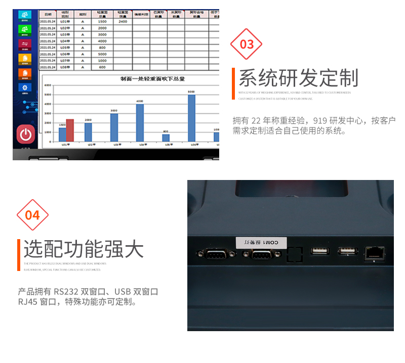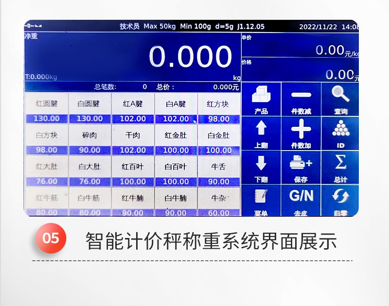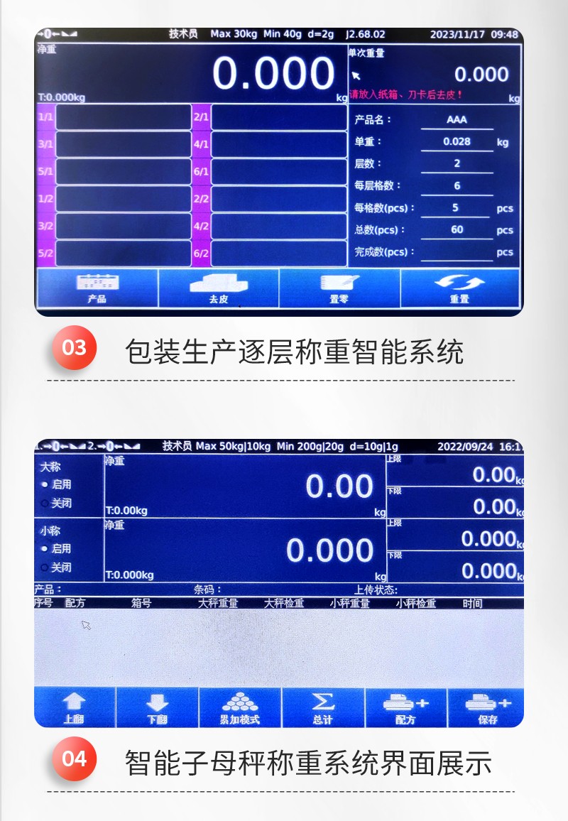 解決方案: 7英寸高清觸摸彩屏提供圖形化直觀操作界面,結合5個實體機械按鍵,簡單易上手。可預設8個ID變量(如批號、規格),稱重時一鍵調用,避免重復輸入,從源頭防止操作錯誤。